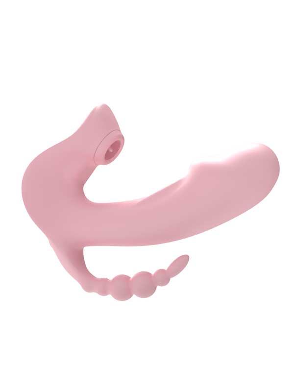 3 Başlıklı Klitoral Emiş ve Dil Vibratör. Başlıkardan biri emiş gücüne ve dil etkisine sahiptir. Başlıklardan diğeri penis şeklindedir ve titreşimlidir. Diğer başlık tırıtıklı yapıdadır ve titreşimlidir. Uzaktan kumanda ile kontrol edilir. Pembe renklidir.