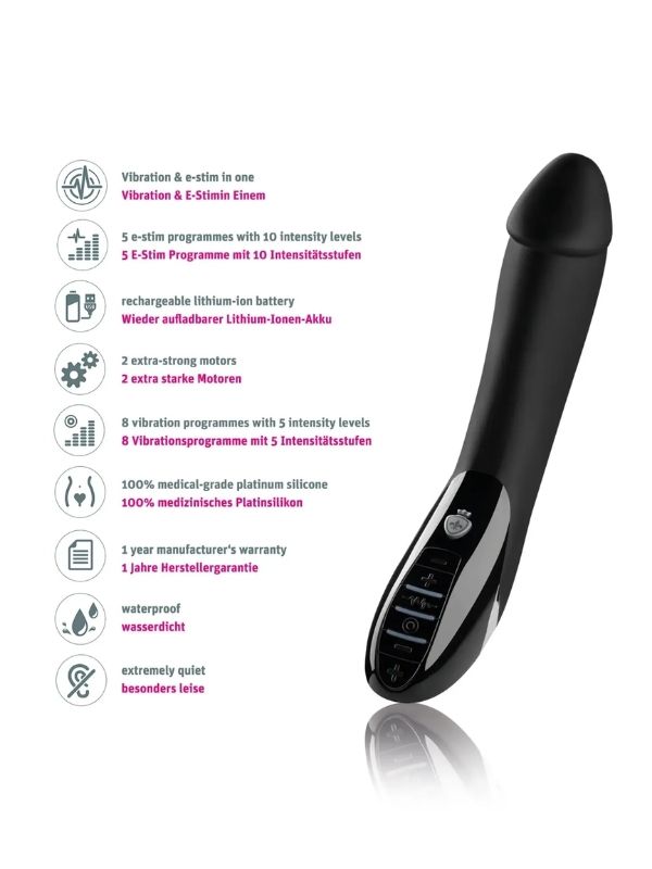 Mystim Tickling Truman Black Edition, mükemmel tarzı ve dizginsiz cinsel gücü olan bir vibratördür. 5 elektrostimülasyon moduna ve 10 güç seviyesine sahip MyStim özelliği, olağandışı cinsel boşalmaya izin verir. Bu alaycı hafif karıncalanma ya da iddialı bir dalgalanma olacak – bu size kalmış. İki motor oyunu 8 mod ve 5 titreşim hızıyla tamamlar. Elektrik stimülasyonu ile değiştirilebilir veya birlikte kullanılabilirler. Eğitim rejimi, samimi kasları zahmetsizce tonda tutmaya yardımcı olur ve daha sonra her iki tarafın da zevkini arttırır. Mystim Tickling Truman Black Edition – Kendinizi tamamen samimi bir şekilde keşfetmeye teslim edebileceğiniz zaman.